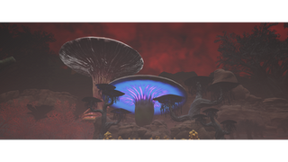 Like an effervescent parasite passionately bent on infecting your mind, the Forest of Radiance digs deep into one’s own psychology, injecting it with sicknesses that rot deep. Anxiety, guilt, hallucinations, or even pure psychosis, the forest works to contaminate the human mind and achieve its own malicious way of survival. As expressed by many who’ve entered the harrowing land, it seems as though the world toys with its victims, inflicting them with prolonged torment. Dark canyon walls trap a veiling thick fog of a glowing magnetic red that devilishly swirls with a suffocating black smoke like haze reminiscent of a toxin heavy fire. Although the upper layer of daytime clouds is so thick it blocks even the most desperate of casted sunlight from reaching the blood red soil of the forest floor, the land remains lit. Tinted in a bright red that radiates from the wicked relative of the planets Voltaea clouds high above, the land is silhouetted with twisted trees, building sized mushrooms, and claustrophobia inducing canyons that tower high above. Life has taken desperate turns here, with next level defense mechanisms that seem severe even on Lumin. Plants fill the forest, but they are far from chlorophyllic green that drives awe and beauty with just a glance. Some plants, like the disturbing monstrous creatures found in the land, roam freely with minds of their own… with a yearn for blood. Others dispel gasses that have been known to kill entire squads of researchers with a single outward puff. Although nobody asks, there are constant reminders of how desperately the world wants to kill.